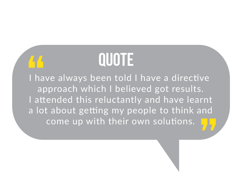 The manager as coach program assists managers to conduct quick and efficient coaching conversations with powerful impact. Through providing more effective and regular feedback and by tackling difficult issues when they arise, managers notice an improvement in productivity as well as discretionary effort. Coaching creates ownership and builds engagement within the business.